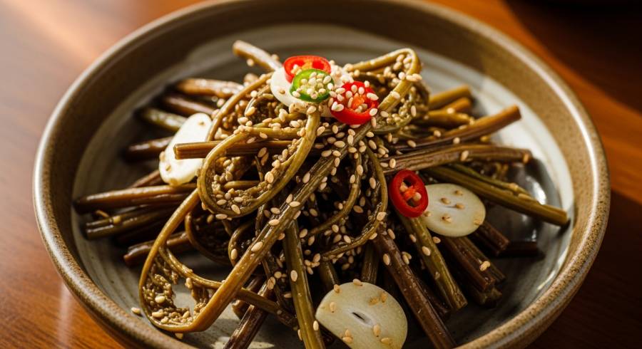 고사리의 꽃은 단연코 볶음입니다. 대보름 상차림의 핵심으로, 온 가족이 모여 건강을 기원하는 마음이 담긴 요리죠.